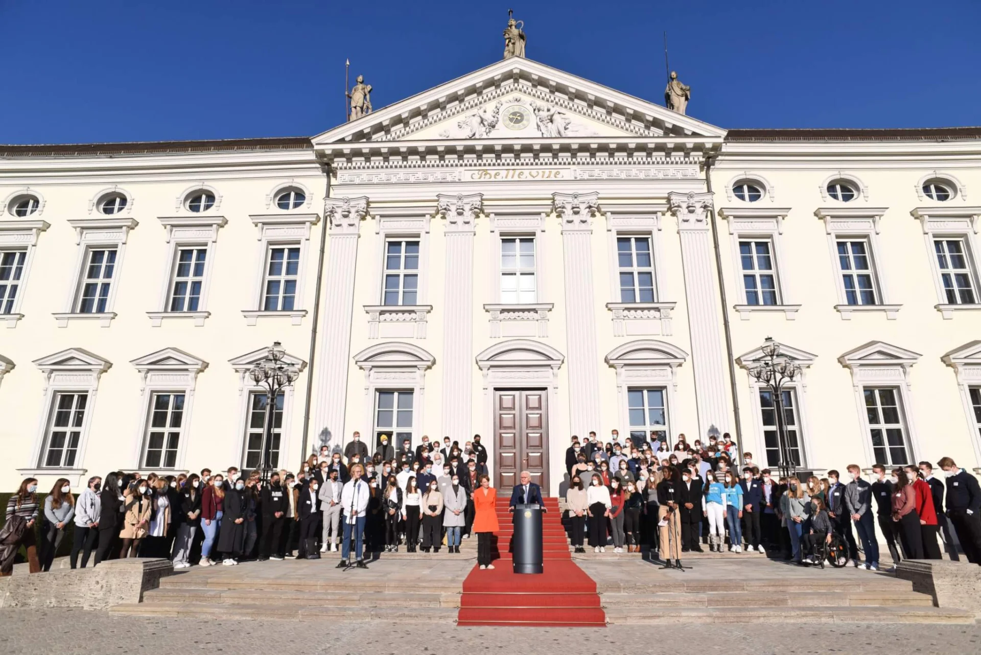 Bundespräsident Frank-Walter Steinmeier und Elke Büdenbender luden 150 Jugendliche und junge Erwachsene aus ganz Deutschland ins Schloss Bellevue ein. Für einen Tag stellte der Bundespräsident seinen Amtssitz und seinen Instagram-Kanal als Plattform für die Anliegen seiner jungen Gäste zur Verfügung. Dazu hat er symbolisch den Schlüssel übergeben.
